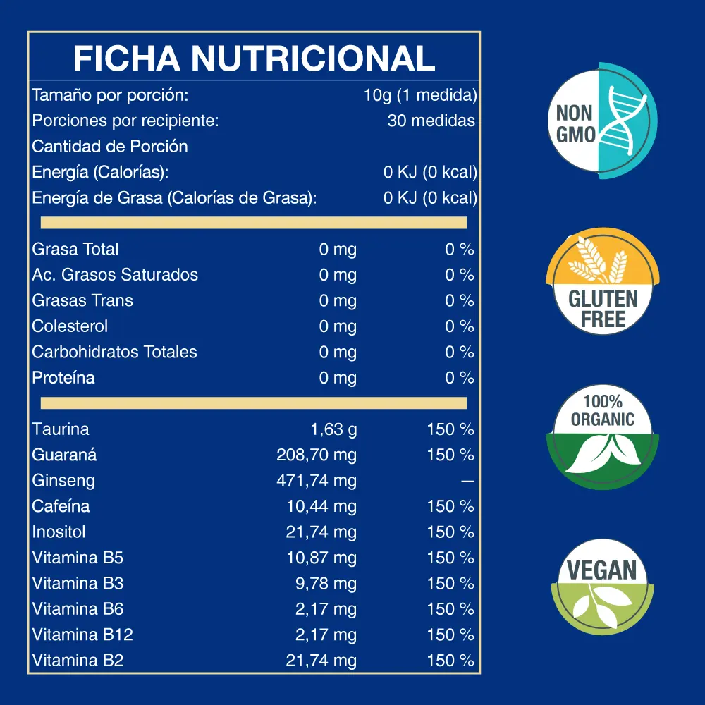 NOM-GMO (Sin transgénicos) Sin organismos genéticamente modificados, asegurando su origen natural. |